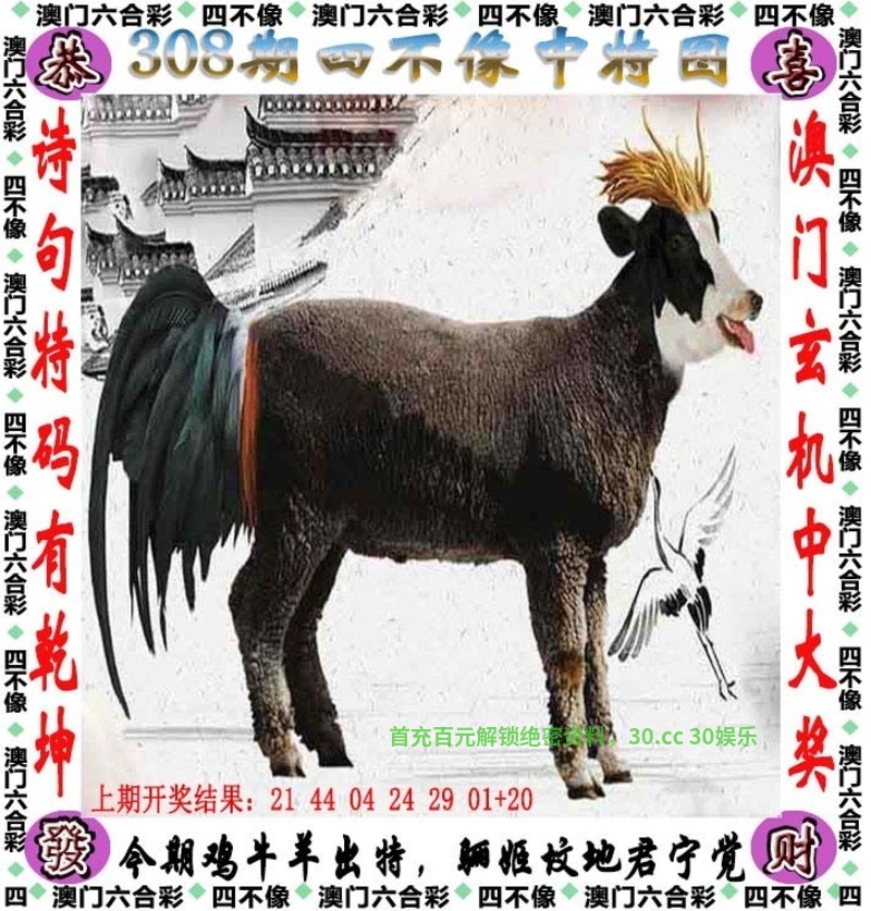 | 308期:复式连肖【羊马牛龙猴鸡】中4个 |